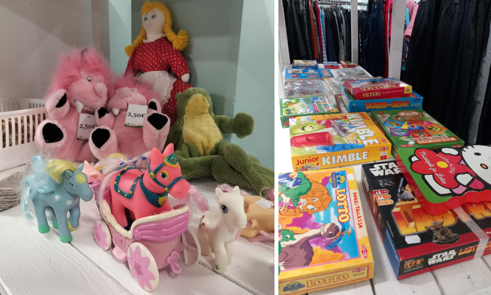 Kierrätysmyymälässä myydään vaatteita, kirjoja, astioita, kodinkoneita ja huonekaluja sekä kierrätystekstiileistä tehtyjä uusiotuotteita. Vaatteissa hintamme ovat edulliset, keskimäärin 9 €/kg. Todella hyväkuntoisissa vaatteissa on kappalehinnat.